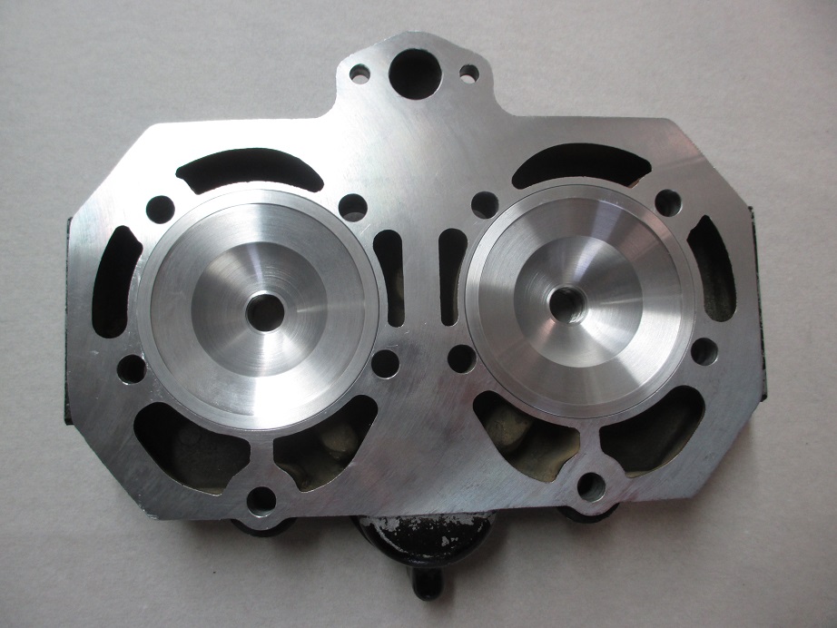 • Der Zylinderkopf wird ausgespindelt / Ausgefräst für die MRG Zylinderkopfeinsätze / Kalotten und O-Ringumbau